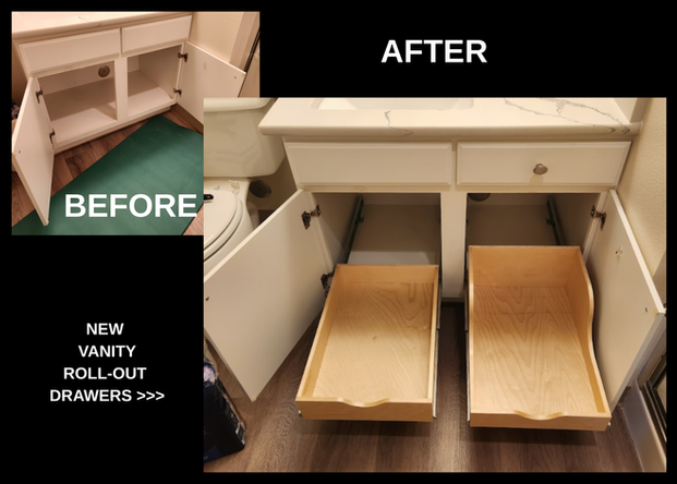 Roll-out drawers at kitchens and bathrooms.